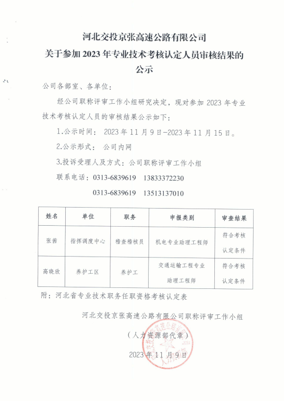 關(guān)于參加 2023 年專業(yè)技術(shù)考核認定人員審核結(jié)果的公示
