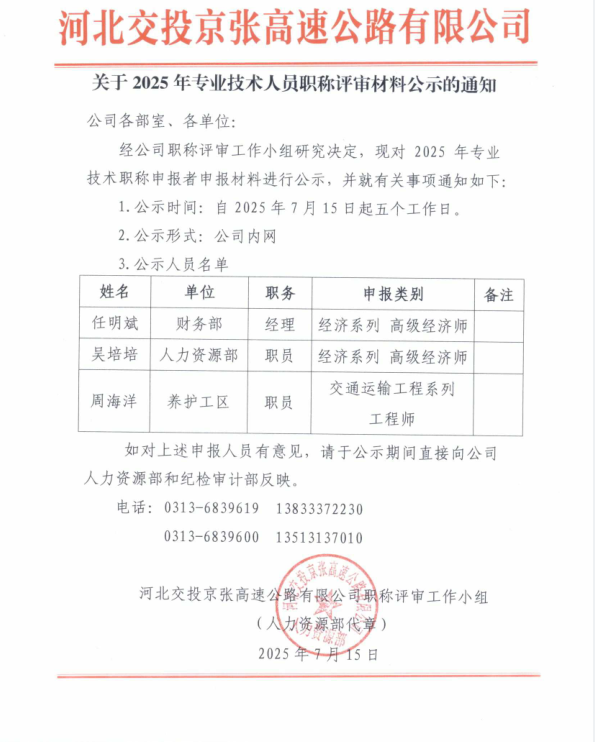 關于2025年專業(yè)技術人員職稱評審材料公示的通知