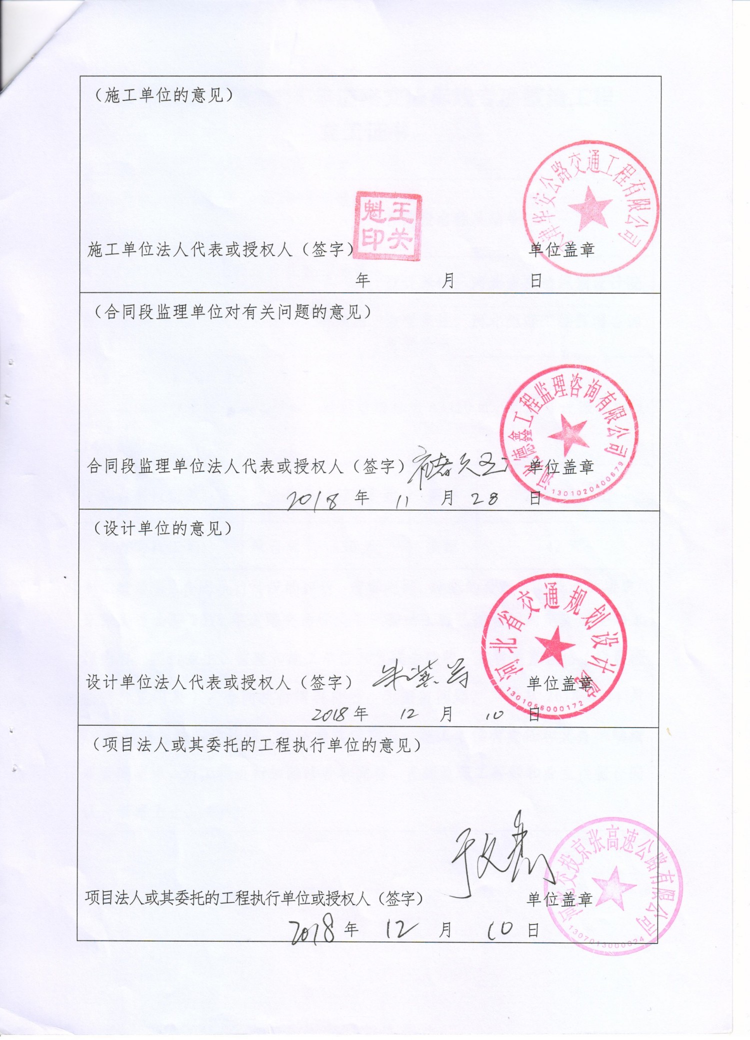 京張高速公路2018年道路交通標(biāo)線專項整治工程交工證書
